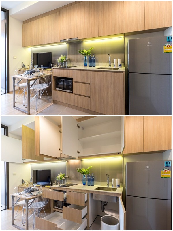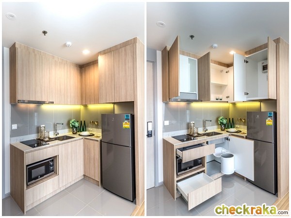 เปิดเข้ามาจะเป็นโซนของห้องครัว เชื่อมต่อกับส่วนของห้องนั่งเล่น