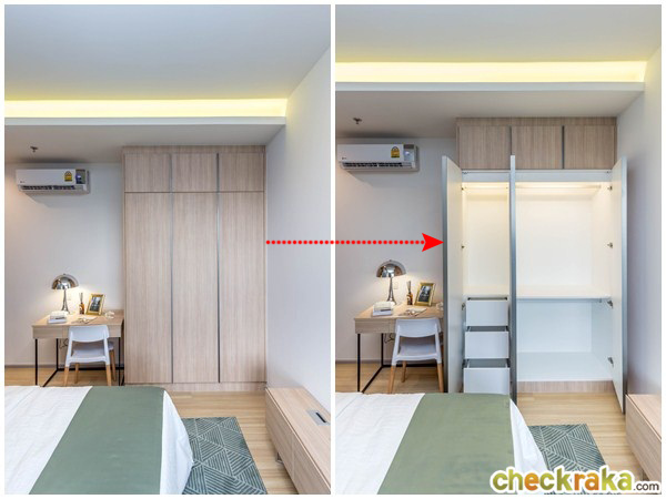 ตำแหน่งตู้เสื้อผ้าอยู่ใกล้กับประตูทางเข้าห้อง
