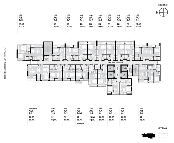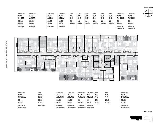 ที่เหลือจะเป็นห้องแบบ 1 Bedroom Duplex 11 ยูนิต และ 2 Bedroom Duplex อีก 2 ยูนิต
