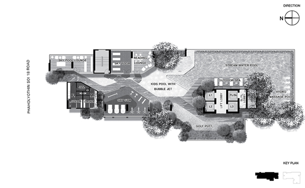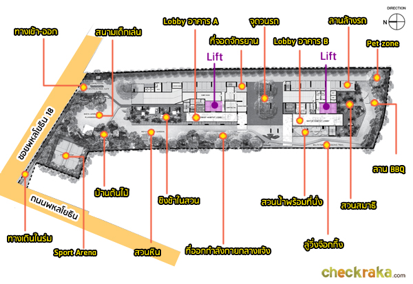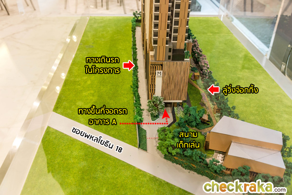ทางเข้า-ออกหลักของโครงการอยู่ในซอยพหลโยธิน 18