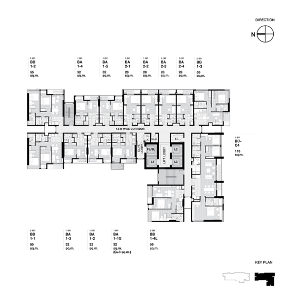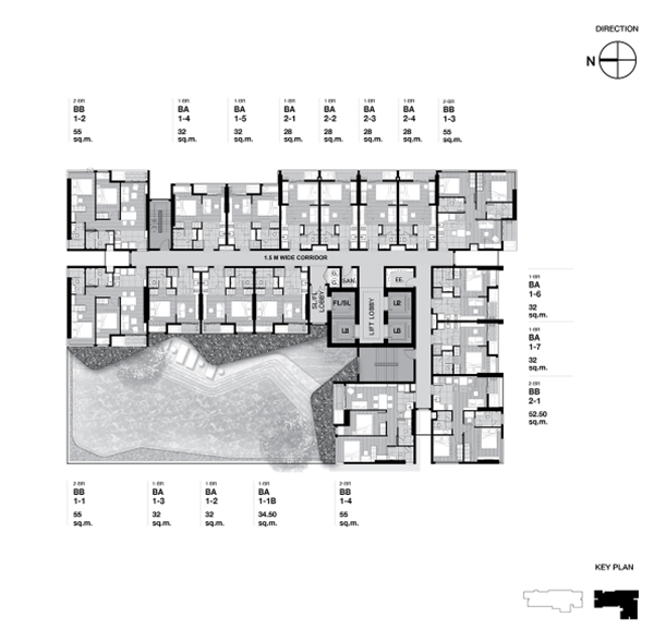 และ 2 Bedroom อีก 4 ยูนิต ซึ่งแต่ละชั้นจะมีความแตกต่างกันบ้างเล็กน้อยตรงขนาดของห้องแบบ 1 Bedroom