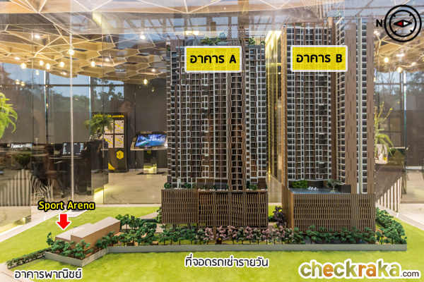 - อาคารชุดพักอาศัย: High-Rise อาคาร A สูง 32 ชั้น จำนวน 459 ยูนิต และ อาคาร B สูง 34 ชั้น จำนวน 405 ยูนิต