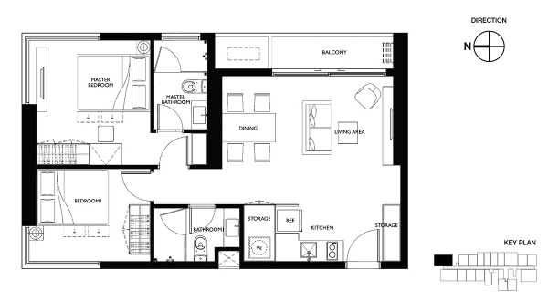 และ 2 Bedroom อีก 3 ยูนิต อยู่บริเวณห้องมุม