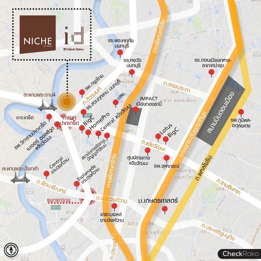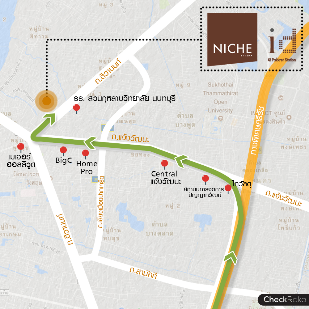 แผนที่ตั้งโครงการและสถานที่ใกล้เคียง นิช ไอดี แอท ปากเกร็ด สเตชั่น