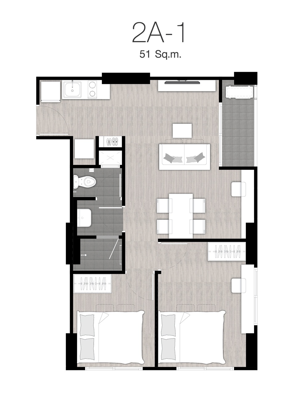 - 2 ห้องนอน ขนาด 51 ตร.ม.