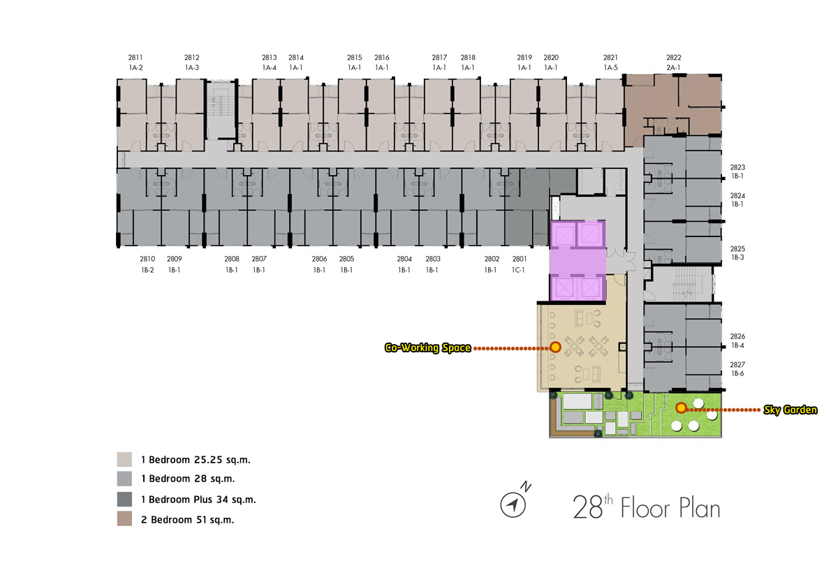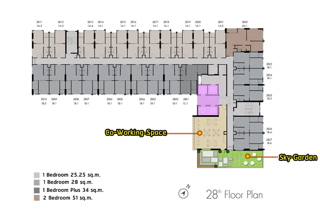 ที่ชั้น 28 เป็นห้อง Co-Working Space เปิดออกมาเป็น Rooftop จัดเป็น Sky Garden หรือสวนเล่นระดับ