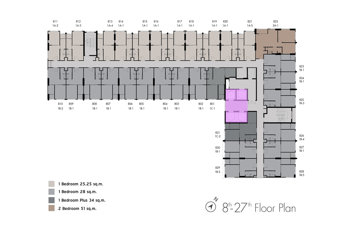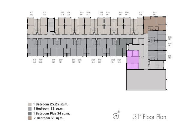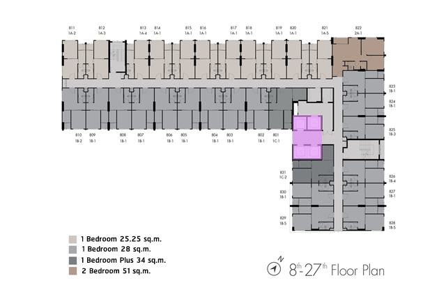 - 1 ห้องนอน ขนาด 25.25 - 28 ตร.ม.
