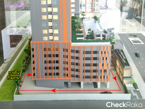 การเดินรถแบบ one-way จากหน้าโครงการขับเข้ามาแล้วเลี้ยวซ้าย วิ่งวนมาเรื่อยๆ ทางขึ้นที่จอดรถจะอยู่ด้านหลังโครงการ
