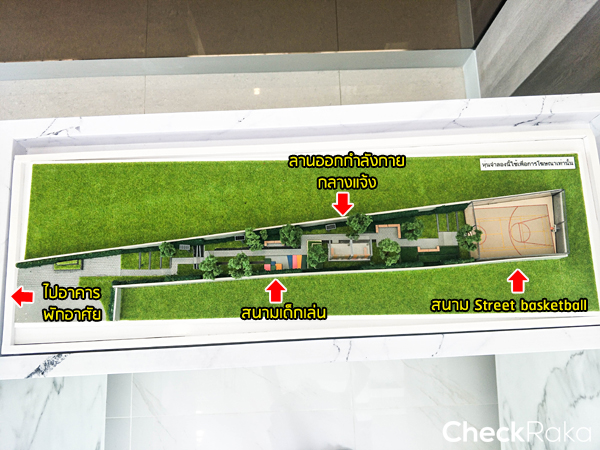 สำหรับให้ลูกบ้านมาออกกำลังกาย รับลมเย็นๆ โดยเดินเชื่อมต่อมาจากส่วนของอาคารพักอาศัย และพื้นที่จอดรถ