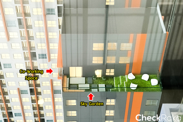 สำหรับให้ลูกบ้านมานั่งพักผ่อนพร้อมชมวิวเมือง โดยขอบรั้วของ Co-Working Space ห้องฟิตเนส และสระว่ายน้ำตัวกำแพงหรือว่าขอบกันตกจะดีไซน์เป็นกระจกใสทั้งหมด ทำให้สามารถเทควิวได้แบบเต็มตามากขึ้น