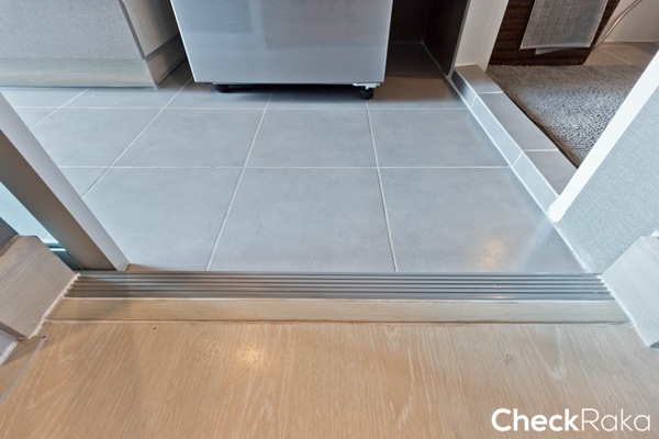 ยกธรณีห้องน้ำยกสูงขึ้นประมาณ 3 ซม. ป้องกันน้ำไหลจากห้องน้ำออกมายังพื้นครัว