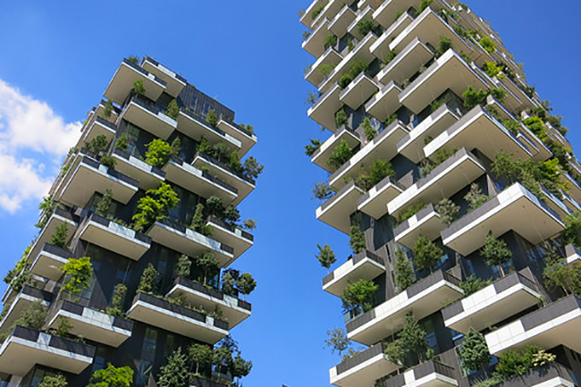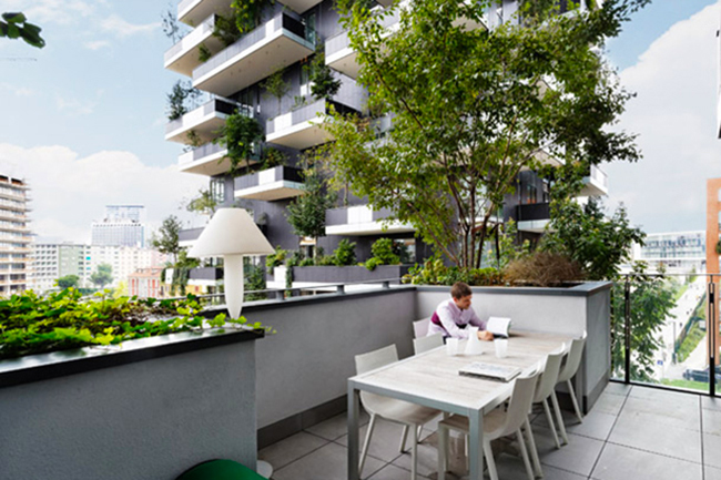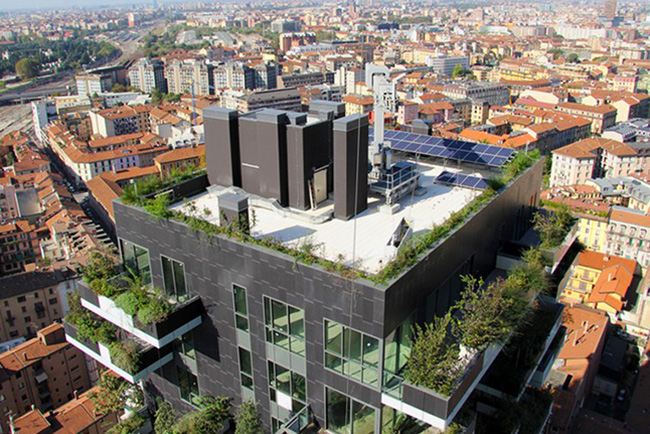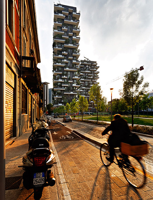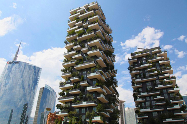 "Stefano Boeri (สเตฟาโน โบเอรี)" สถาปนิกชาวอิตาลี ก็เป็นอีกคนหนึ่ง ที่พยายามสรรค์สร้างความแตกต่าง ประยุกต์โลกยุคใหม่ให้กลับสู่โลกของธรรมชาติ จากแนวคิดนี้ทำให้เกิดตึกระฟ้า "Bosco Verticale (บอสโก เวอร์ติคาเล)" อาคารแฝดที่เป็นคอนโดสำหรับพักอาศัย 2 หลัง มี 27 ชั้น และ 18 ชั้น อยู่ในเมืองมิลาน ประเทศอิตาลี