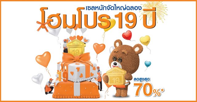โฮมโปร จัดโปรโมชั่น "ฉลองครบรอบ 19 ปี แจกทอง 19 บาท" กระตุ้นกำลังซื้อครึ่งปีหลัง วันนี้ - 23 ก.ย. 58
