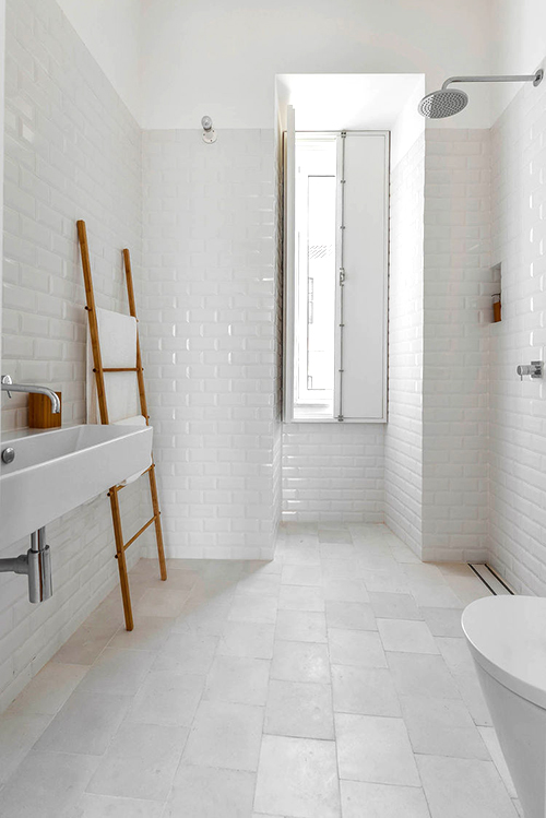 1. ไม้วอลนัทกับกระเบื้องสีขาว