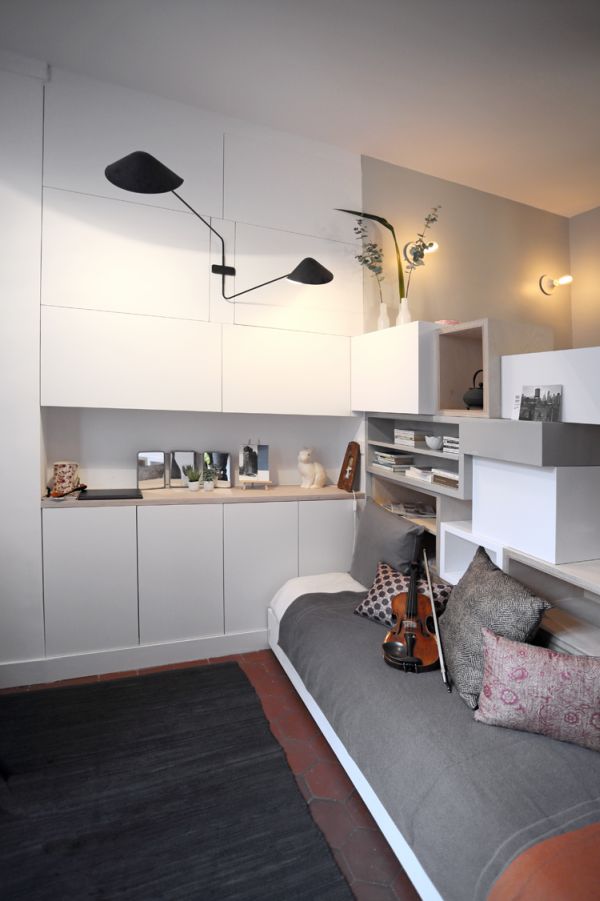 จากห้องว่างเปล่าใจกลางกรุงปารีส ถูกรีโนเวทใหม่ให้กลายห้องพักเล็กๆ แต่คุ้มค่าสุดๆ ของสองนักไวโอลินมากฝีมือ ด้วยพื้นที่ที่มีอยู่จำกัด การแบ่งสัดส่วนของห้องต่างๆ ต้องใช้เทคนิคในการสร้างสรรค์อย่างมากเลยค่ะ