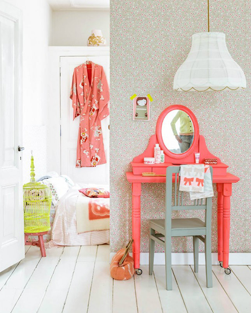 10. โต๊ะเครื่องแป้งสีสันสดใส เหมาะกับสาวๆ บุคลิกร่าเริง มีความมุ้งมิ้งเป็นเด็กอยู่เสมอ