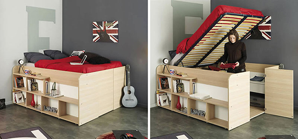 1. แค่ยกเตียงขึ้น ก็เป็นห้องเก็บของเล็กๆ ได้