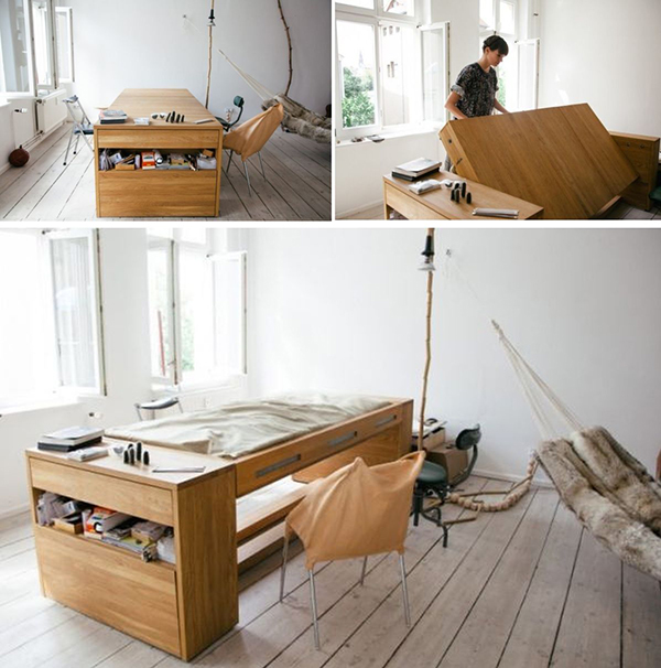 5. แค่หมุน... ก็เปลี่ยนโต๊ะทำงานให้เป็นเตียงนอนแบบง่ายๆ