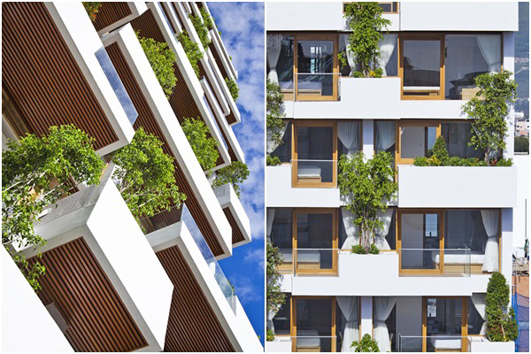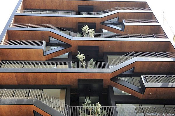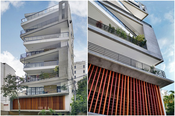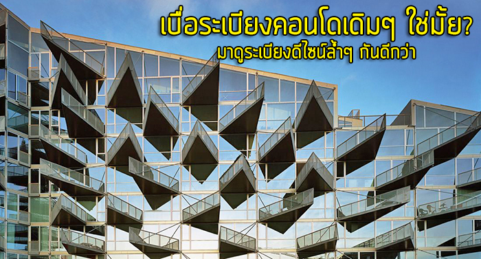 10. ระเบียงสามเหลี่ยมหันหน้าในทิศทางที่ต่างกัน เสริมความล้ำให้ตัวตึกได้ดีทีเดียว