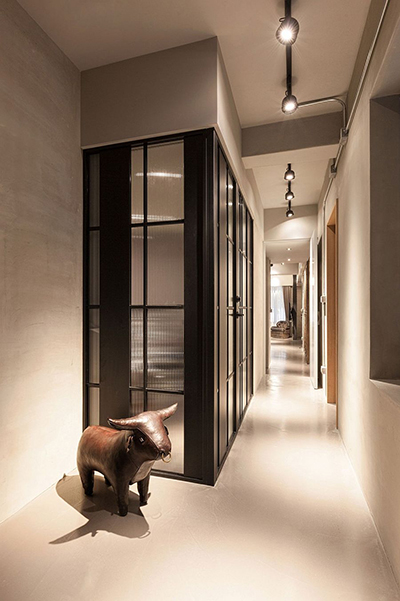 ทางเดินเชื่อมภายในห้อง แหงนขึ้นไปเจอไฟดาวน์ไลท์เก๋ๆ