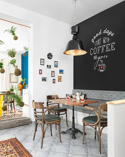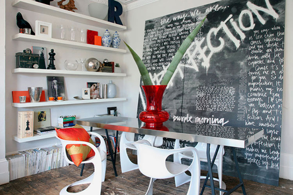 เก้าอี้สไตล์โมเดิร์น แถมด้วยผนังแบบกระดานดำสุดเท่