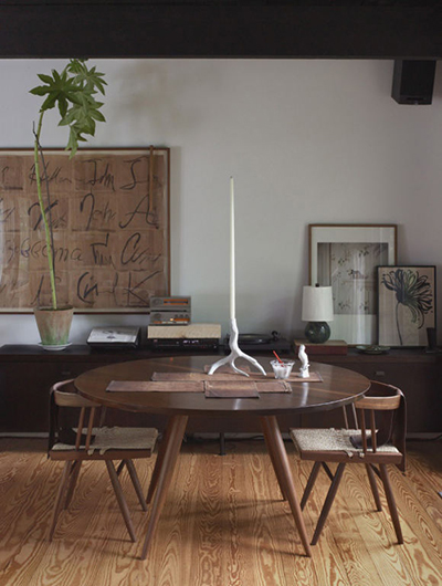 โต๊ะไม้ธรรมดา ดึงสายตาด้วยเชิงเทียนสูงชะลูด