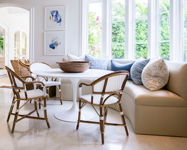 โต๊ะยาวๆ สำหรับครอบครัวใหญ่ เพิ่มลูกเล่นด้วยหมอนอิงสีเจ็บ