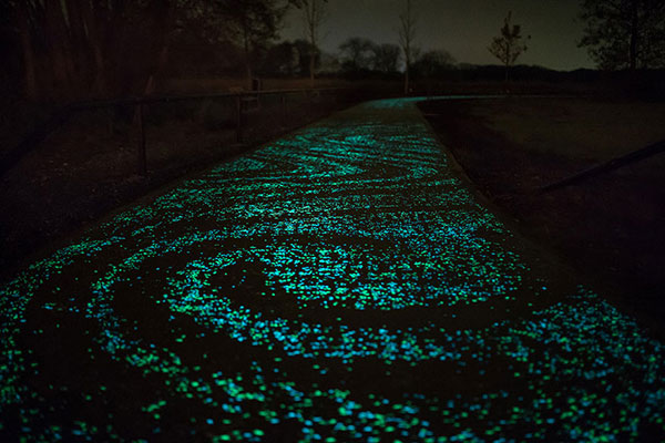 ออกแบบพื้นถนนให้เหมือนกับก้อนกรวดเรืองแสงในที่มืดด้วยการฝังหลอดไฟ LED ไว้บนชั้นผิวถนน