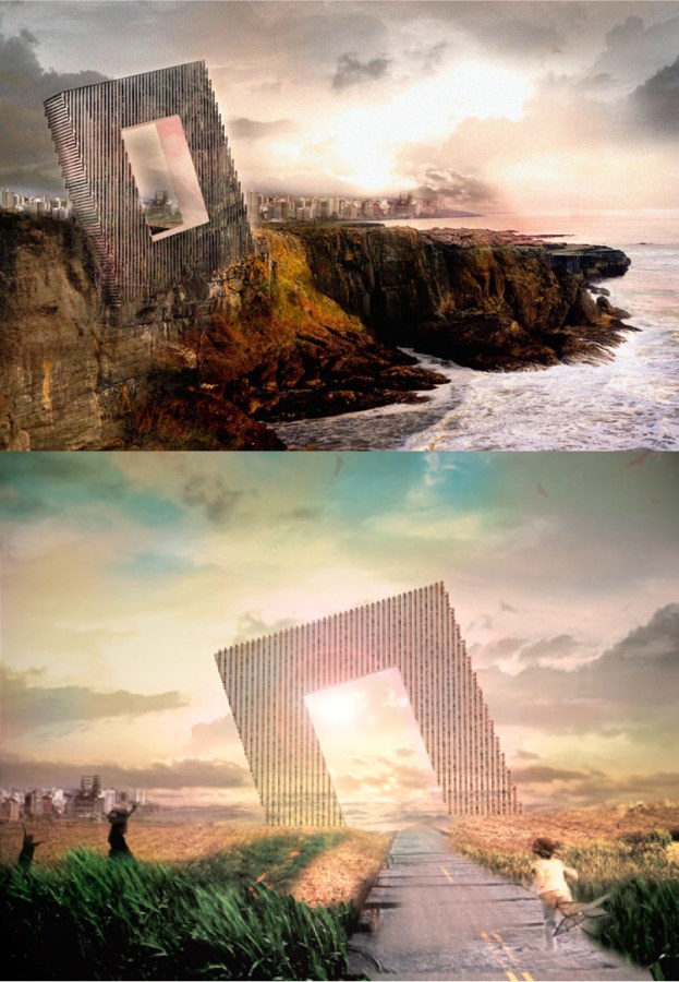 โรงแรมที่ออกแบบรูปทรงของอาคารให้คล้ายกรอบรูปและเป็นส่วนหนึ่งของหน้าผา