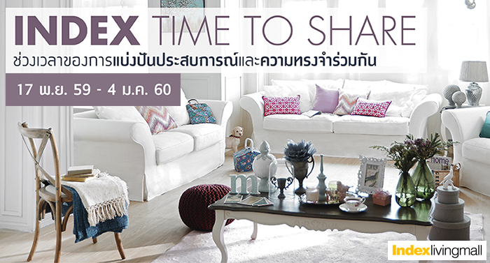 Index Living Mall จัดโปรโมชั่น INDEX TIME TO SHARE ช่วงเวลาของการแบ่งปันประสบการณ์และความทรงจำร่วมกัน พบกับสินค้าราคาพิเศษและโปรโมชั่นอีกมากมาย อาทิ