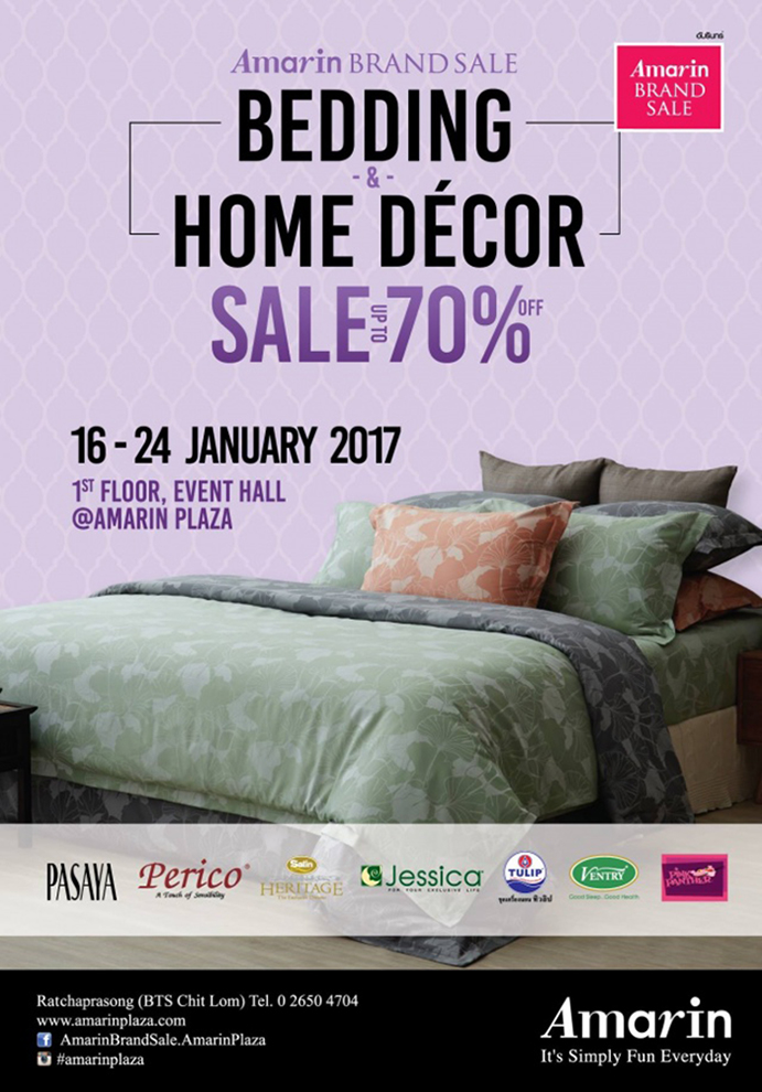 Amarin Brand Sale : Bedding & Home Decor Sale up to 70% วันนี้ - 24 ม.ค. 60