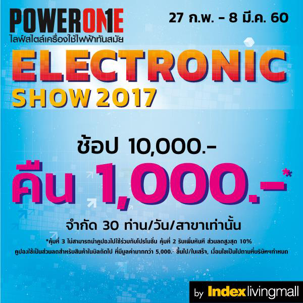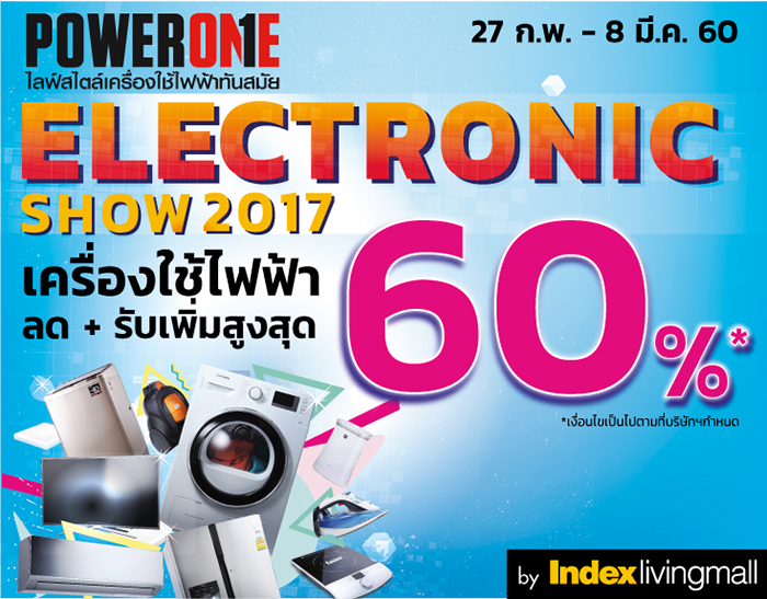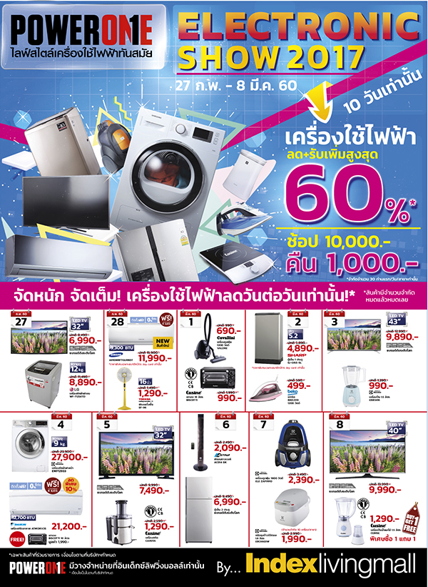 POWERONE "Electronic Show 2017" เครื่องใช้ไฟฟ้า ลด+รับ เพิ่มสูงสุด 60% By Index Living Mall