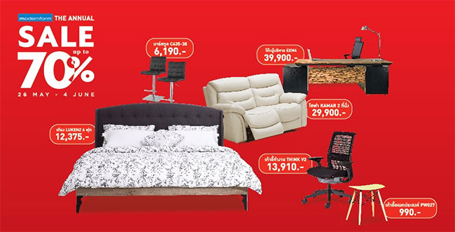 มหกรรมลดราคาครั้งใหญ่ที่สุดในรอบปี 2017 พบกับเฟอร์นิเจอร์หลากสไตล์ จากโมเดิร์นฟอร์ม พร้อมส่วนลดพิเศษสูงสุดถึง 70% !!!