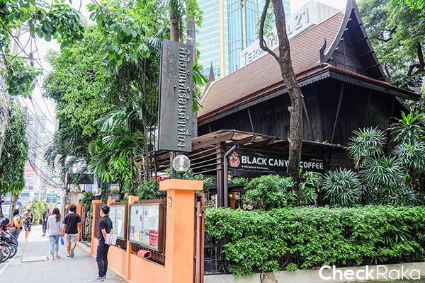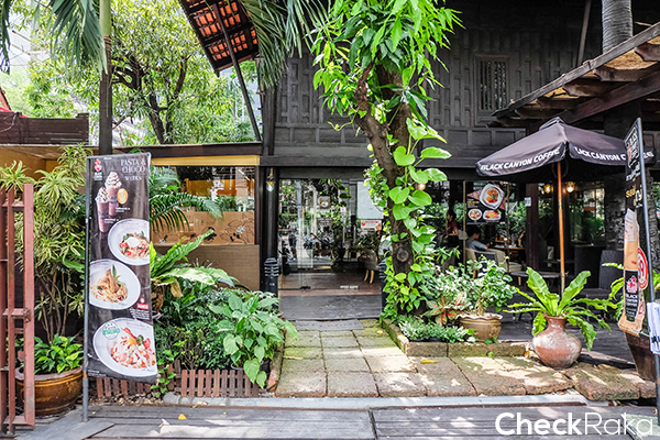 ด้านหน้าพิพิธภัณฑ์เรือนคำเที่ยงเป็นร้าน Black Canyon Coffee