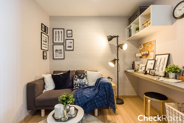 ห้องนั่งเล่นห้องนี้มีขนาดใหญ่กว่าห้องที่แล้ว สามารถวางโซฟาได้ขนาด 2-3 ที่นั่ง พร้อมโต๊ะกลาง 1 ตัว
