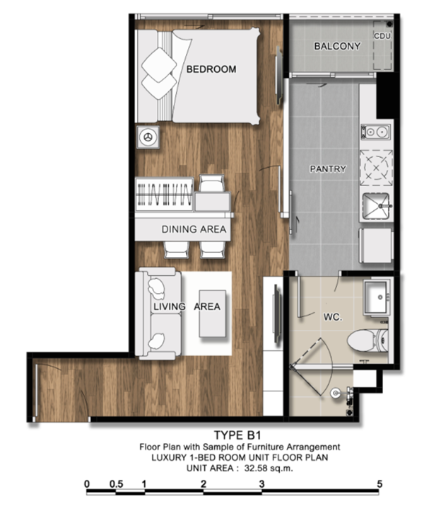 - 1 Bedroom ขนาด 28.02 - 43.01 ตร.ม.