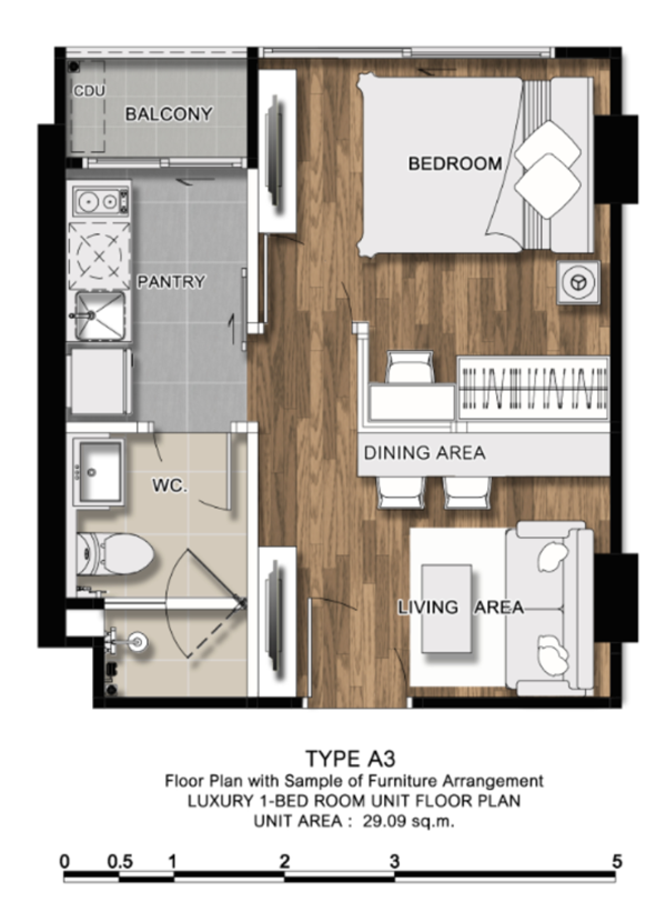 - 1 Bedroom ขนาด 28.02 - 43.01 ตร.ม.