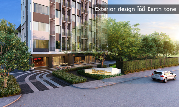 Exterior design ใช้สี Earth tone อาทิ เทาอ่อน เทาเข้ม และน้ำตาล