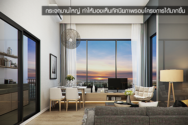 โครงการนี้ได้เน้นความโปร่งสบายด้วยฝ้าเพดานสูงถึง 4.45 เมตร โดยปกติโครงการทั่วไปก็จะอยู่ที่ 2.40-2.70 เมตรเท่านั้น จึงทำให้โครงการนี้โดดเด่นและถือเป็นของหายากในตลาดคอนโดเลยค่ะ นอกจากนั้นภายในห้องเลือกใช้กระจกบานใหญ่เพื่อให้สามารถมองเห็นทัศนียภาพรอบโครงการได้มากขึ้น ยิ่งเป็นคอนโดสูงที่ไม่มีตึกสูงอื่นๆ บังวิว ยิ่งทำให้เทควิวได้สบายตา