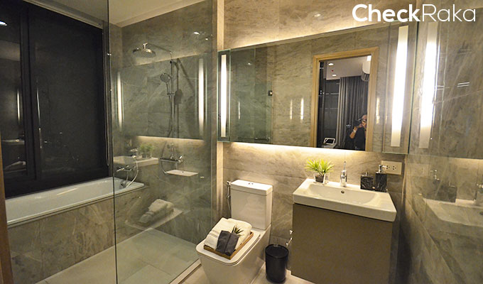 แบบ 2 ห้องนอน จะมีห้องน้ำ 2 ห้องด้วยกันค่ะ มีอ่างอาบน้ำด้วย