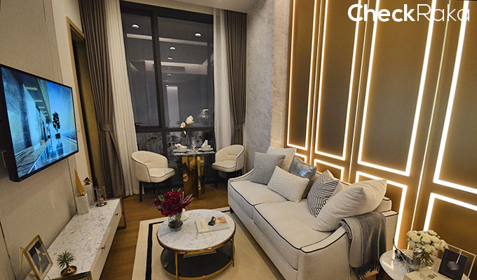 วันนี้เราจะพาไปชมห้องตัวอย่าง 2 Type ด้วยกันค่ะ คือแบบ 1 ห้องนอน (34.62 ตร.ม.) และแบบ 2+1 ห้องนอน (58.52 ตร.ม.) ซึ่งจะขายแบบ Fully Fitted พร้อม Digital Door Lock ทุกห้อง