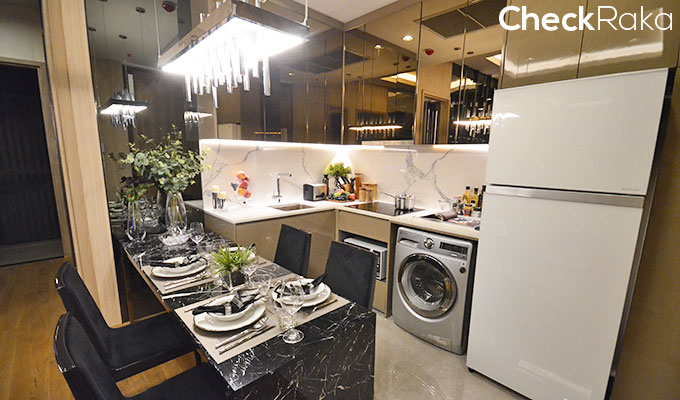 ห้องครัว มีพื้นที่ว่าสำหรับวางโต๊ะอาหารขนาด 4 ที่นั่งได้สบาย