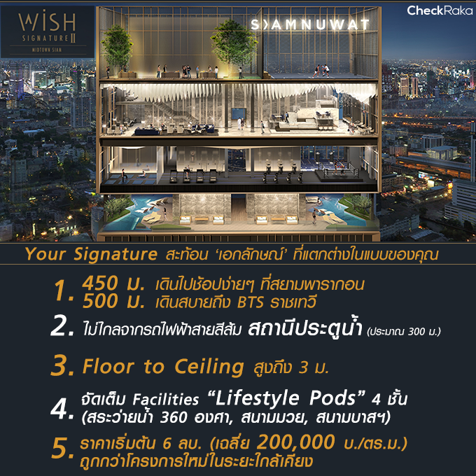 Wish Signature II Midtown Siam คอนโดหรูใกล้สยามหนึ่งเดียวในไทย 450 ม. ถึงสยามพารากอน