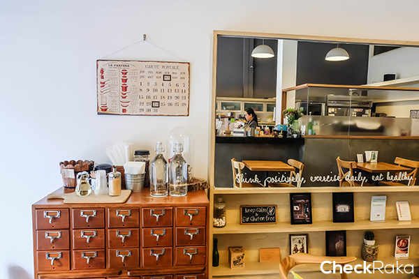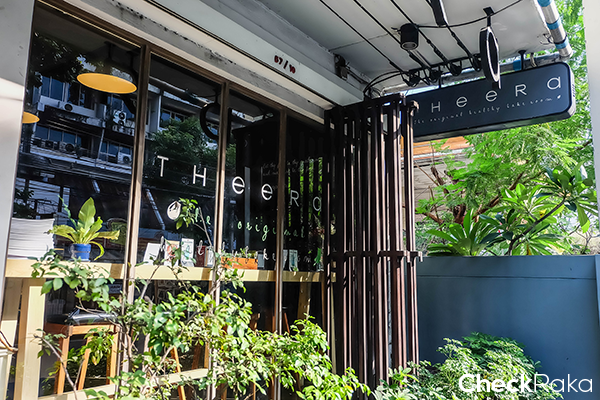 ขณะที่เดินไปเรื่อยๆ ภายในซอยสุขุมวิท 42 ใกล้ๆ กับโครงการ Noble Ambience Sukhumvit 42 ก็สะดุดตากับคาเฟ่หนึ่ง หน้าร้านตกแต่งได้สวยงาม เข้าไปก็พบว่าน่าสนใจมากๆ เลยค่ะ ชื่อร้านว่า Theera : The Original Healthy Bake Room ร้านขนมเพื่อสุขภาพที่ปราศจากแป้งสาลี นม เนย และไข่ และเลือกใช้วัตถุดิบธรรมชาติต่างๆ เข้ามาทดแทน ปรับสูตรจนลงตัว ขนมของทางร้านจึงเป็นที่ถูกอกถูกใจของคนที่แพ้ส่วนประกอบจำพวกแป้งสาลี นม เนย ไข่ รวมถึงคนทั่วไปด้วยค่ะ