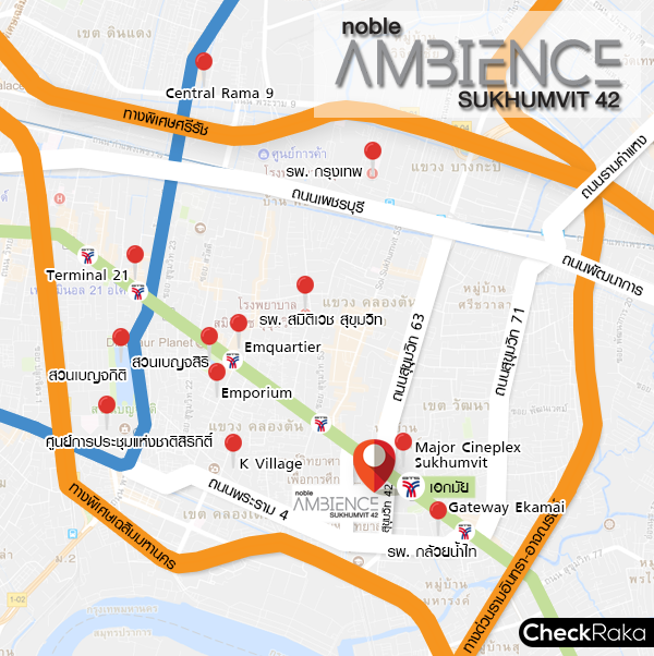 หากกล่าวถึงสุขุมวิทหลายคนก็จะนึกถึงความวุ่นวาย รถติด แต่คงใช้ไม่ได้กับที่สุขุมวิท 42 เพราะในซอยนี้ค่อนข้างที่จะเงียบ คนไม่พลุกพล่าน แต่ก็ยังมีชีวิตชีวาและพร้อมสำหรับการอยู่อาศัย ทำเลดีขนาดนี้ Noble ก็ไม่พลาดปักหลักเปิดคอนโดใหม่ โนเบิล แอมเบียนส์ สุขุมวิท 42 (Noble Ambience Sukhumvit 42) ใกล้ BTS เอกมัย เพียง 350 เมตร และยังใกล้กับ Gateway Ekamai, Major Cineplex Sukhumvit ที่อยู่ในระยะเดินได้ และสามารถทะลุออกไปถนนพระราม 4 ได้สะดวกอีกด้วย วันนี้ CheckRaka.com จะพาไปสำรวจพื้นที่รอบๆ โครงการกันค่ะ