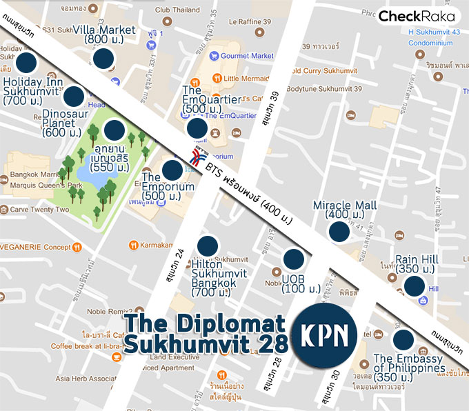 เดอะ ดิโพลแมท สุขุมวิท 28 (The Diplomat Sukhumvit 28) จาก เคพีเอ็น (KPN) คอนโด High Rise 30 ชั้น 1 อาคาร 265 ยูนิต อยู่ระหว่างซอย สุขุมวิท 28 และสุขุมวิท 30