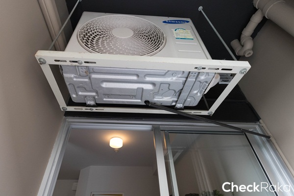 คอมเพรสเซอร์แอร์ติดตั้งไว้ด้านบน เป่าลมร้อนออกด้านนอกอาคาร ทำให้พื้นที่บริเวณระเบียงไม่ร้อน