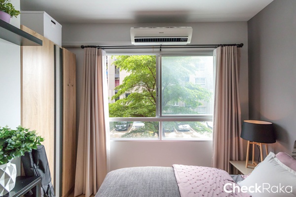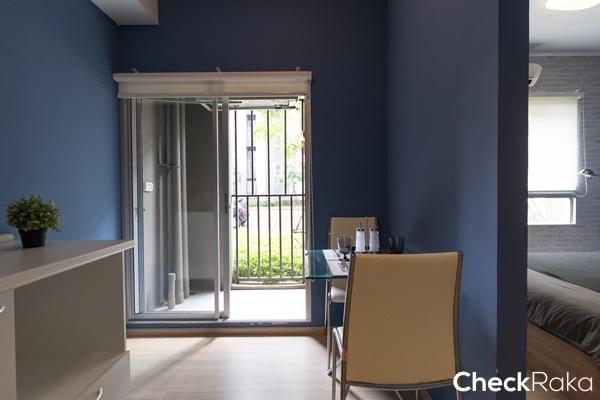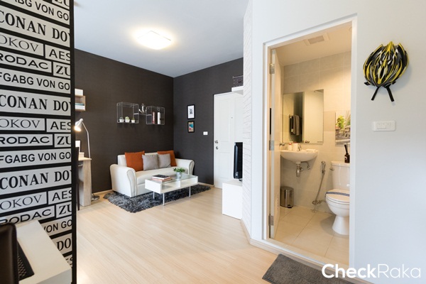 ส่วนห้องตัวอย่างที่จะพาไปดูกันในวันนี้เป็นห้องจริงที่อยู่บนชั้น 1 และชั้น 2 ของอาคาร A โดยทางโครงการจัดไว้ให้ดู 2 ห้องด้วยกัน เป็นห้องแบบ Studio ขนาด 26.39 ตร.ม. และ 22.82 ตร.ม. ตามเราไปดูทีละห้องกันเลยค่ะ เริ่มจากห้องแรก