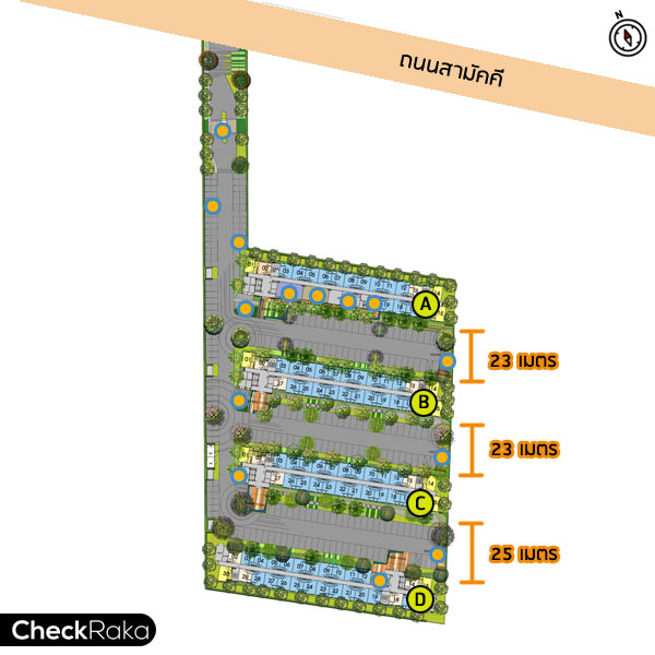 - อาคาร C กับอาคาร D มีระยะห่าง 25 เมตร