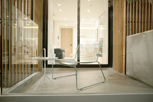 ระเบียงสามารถวางชุดโต๊ะได้ค่ะ ชมวิวไม่ติดขอบเพราะกันตกด้วยกระจก Frameless ไร้ขอบเปิดมุมมองรอบทิศทาง